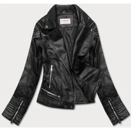 Čierna dámska bunda z eko kože (11Z8030)