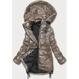 Dámska bunda v kakaovej farbe s odopínacou kapucňou (B8086-12)