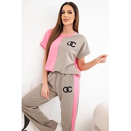 Dámska maslová súprava s oversize mikinou a širokými nohavicami ružová + fango