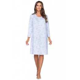 Dámska bavlnená nočná košeľa Regina. Košeľa je voľnejšieho strihu a na komforte ju pridáva ľahký pružný bavlnený materiál. Hlbší výstrih košele s prepínacími gombíkmi ju robia ešte pohodlnejšie. Táto košeľa sa vyrába aj do väčších veľkostí.
