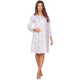 Dámska bavlnená nočná košeľa Regina. Košeľa je voľnejšieho strihu a na komforte ju pridáva ľahký pružný bavlnený materiál. Hlbší výstrih košele s prepínacími gombíkmi ju robia ešte pohodlnejšie. Táto košeľa sa vyrába aj do väčších veľkostí.