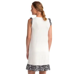 Dámska nočná košeľa s kvetinovým motívom okolo ramien a v spodnej časti pre pohodlie a sladký spánok. Košeľa je vyrobená z popelínu a kvalitného mikromodalu s prímesou elastického Spandexu. Popelín je odolná, pevná a zároveň mäkká a pohodlná tkanina, zatiaľ čo luxusný prírodný mikromodal poskytuje výnimočnú ľahkosť a pohodlie, je priedušný, dobre absorbuje pot a rýchlo schne.