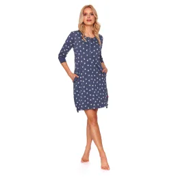 Dámska nočná košeľa 4129 Doctor Nap - vyrobená z kvalitnej a príjemnej tkaniny - modrá farba s trojštvrťovými rukávmi - zapínanie na patentky - s vreckami - ideálna pre tehotné a dojčiace ženy - certifikát OEKO-TEX Standard 100