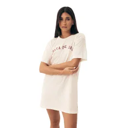 Dámska nočná košeľa 42675 Nimes cream HENDERSON - krémová farba - vyrobená z kvalitnej bavlny - krátke rukávy - vpredu zdobená potlačou - rozparok v spodnej časti