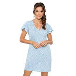 Dámska nočná košeľa Sky Donna - svetlomodrá - vyrobená z kvalitnej bavlny - krátke rukávy - s bodkovanou potlačou