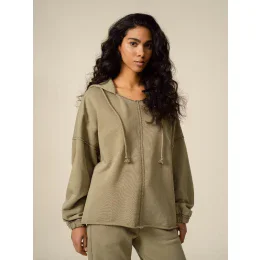 Tepláková mikina s neopracovaným prešívaním a mierne skráteným spodným lemom. Kapucňa so sťahovacou šnúrkou. Voľný strih a mäkká látka so opraným efektom vám zaistí každodenné pohodlie.
