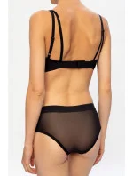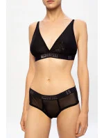 Čierna podprsenka od Diesel. Tento štýl je vyrobený z polopriehľadné sieťoviny a je vybavený elastickým spodným pásikom zdobeným logom štítku vyšívaným striebornou lurexovou priadzí.