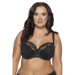 Podprsenka 2110 Azalea black AVA - čierna - polomäkká - košíčky z mikrovlákna vystužené penou - vystužené kosticami - vrchná časť zdobená čipkou - ramienka nastaviteľné a neodnímateľné - zapínanie na 2 alebo 3 háčiky s trojstupňovým nastavením Zloženie materiálu: 88% polyamid + 8% bavlna + 4% elastan