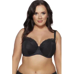Dámska podprsenka 2112 Azalea black AVA - čierna farba - typ full cup - vyrobená z hladkého mikrovlákna - horná časť košíčkov zdobená čipkou - vystužená kosticami - posuvné a neodnímateľné ramienka - zapínanie na dva alebo tri háčiky s trojstupňovou reguláciou Zloženie materiálu: 88% polyamid + 8% bavlna + 4% elastan