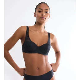 Nádherne navrhnutá podprsenka s kosticami s ľahkými vypchávkami, celá z čipky, ktorá kombinuje zvodný vzhľad s každodenným pohodlím. Lichotivý balkónový strih prirodzene zvýrazňuje dekolt, zatiaľ čo mäkké krídla z mikrovlákna a hladké švy podprsenky ponúkajú mäkké, podporné prispôsobenie. Zakončená mäkkou gumou a nastaviteľnými jazdcami v tvare V pre bezpečné, individuálne prispôsobenie.