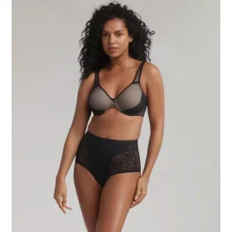 Dámska podprsenka telovej farby, potiahnutá čiernym tylom, s luxusnou čipkou našitou na spodnej časti košíčkov. Ramienka sú posuvné, zapínanie je na chrbte na dva háčiky.