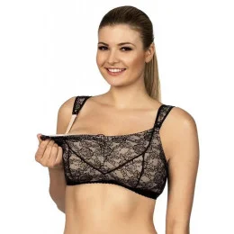 Podprsenka má strih typu "top" a nemá vytvarované košíčky a kostice. Model je vyrobený z efektné čiernej čipky a je podšitý béžovú tkaninou príjemnou na dotyk. Zapínanie typu Clic-Clac uľahčuje odopínanie a zapínanie košíčkov jednou rukou. Vďaka tomu nemusíte pri dojčení podprsenku vyzliekať.