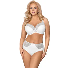 Extra model podprsenky s polovystuženými košíčkami. Je zdobený krásnou výšivkou. Strih dokonale tvaruje prsia a vypĺňa stred. Košíčky majú zvislé švy, ktoré pomáhajú lepšie nadvihnúť prsia. Hladkú štruktúru dopĺňa perleťová látka. Spodnú časť zdobí šifónová látka. Ramienka sú zdobené mašličkami. Model, s ktorým budete spokojná.
