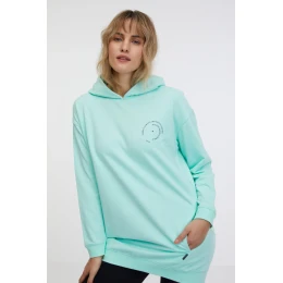 Štýlová dámska mikina s kapucňou s voľným strihom a bočnými vreckami.