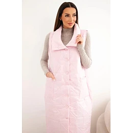 Dámska prešívaná dlhá vesta s vreckami a stojacím golierom candy pink