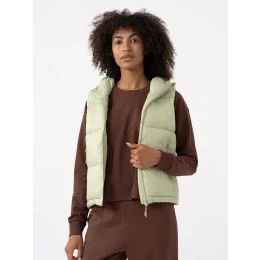 Dámska prešívaná vesta značky 4F.je vyplnená ľahkým syntetickým páperím, ktoré podporuje váš tepelný komfort počas každodenných aktivít. Vonkajší materiál je vybavený hydrofóbnou impregnáciou, ktorá spomaľuje absorpciu vlhkosti. Púzdrová vesta má tiež pohodlnú kapucňu s vysokým stojačikom, ktorá vás ochráni pred vetrom, a vrecká, do ktorých si môžete uložiť svoje veci.