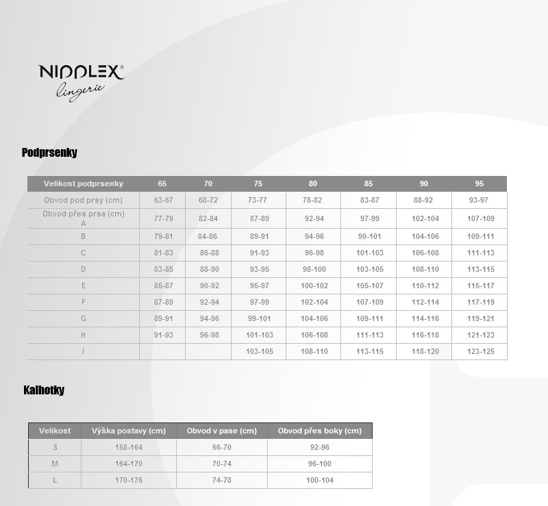 Košíčky sú pokryté čipkou a podšité béžovou bavlnou. Model má vyberateľné push-up vypchávky a zvislé bočné kostice. Ramienka sa dajú nastaviť alebo odopnúť. Podprsenka sa zapína na dva háčiky s tromi možnosťami nastavenia obvodu.