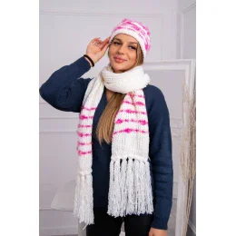 Dámska súprava so šatkou Anika K304 ecru+fuchsia