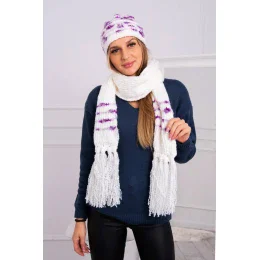 Dámska súprava so šatkou Anika K304 ecru+violet