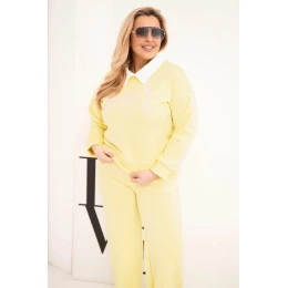 Dámska súprava nadmerných veľkostí so širokými nohavicami a golierom žltá