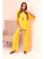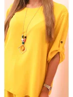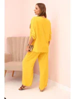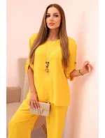 Dámska súprava s blúzkou s náhrdelníkom a širokými nohavicami žltá