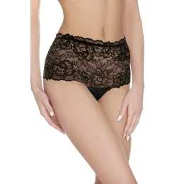 Dámske tangá 079 black EWANA - čierna farba - vyrobená z príjemnej elastickej vzorovanej čipky - vďaka perfektnému strihu veľmi pekne tvarujú zadoček