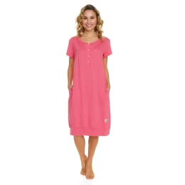 Dámske tehotenské tričko 4348 coral Doctornap - koralová farba - vyrobené z kvalitnej bavlny - krátke rukávy - zapínanie na patentky - vrecká na bokoch - ideálne pre tehotné a dojčiace ženy - certifikát OEKO-TEX Standard 100