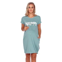Dámske tehotenské tričko 9504 green Doctornap - zelené - vyrobené z kvalitnej bavlny - krátke rukávy - zdobené potlačou na prednej strane - vrecká na bokoch - ideálne pre tehotné a dojčiace ženy - hypoalergénne vlastnosti - certifikát OEKO-TEX Standard 100