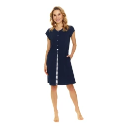 Dámske tehotenské tričko 9703 Doctornap - tmavomodré - vyrobené z kvalitnej bavlny - krátke rukávy - zapínanie na patentky - ozdobné lemovanie - vrecká na bokoch - ideálne pre tehotné a dojčiace ženy - hypoalergénne - certifikát OEKO-TEX Standard 100