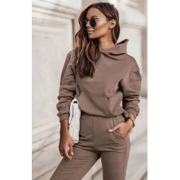 Spoločne, alebo oddelene? Rozhodnite sa sami! Naše teplákové súpravy boli vytvorené podľa zásady kombinuj a kombinuj, ako chceš a ako sa ti páči. Klasická tepláková súprava z príjemného a kvalitného úpletu je ideálnou voľbou pre všetky ženy, ktoré sa chcú v teplákovej súprave cítiť pohodlne a zároveň vyzerať štýlovo – áno, je to možné! Vrchnú časť mikiny tvorí kapucňa s klokaním vreckom na telefón alebo peňaženku. Dlhé rukávy je možné vyhrnúť a zakončiť gumou. Mikina sa skvele hodí k džínsom s vysokým pásom alebo klasickej trubkovej sukni. Nohavice majú úzke dlhé nohavice, ktoré zdôraznia vaše tvary a vy sa v nich budete cítiť naozaj žensky. Majú sťahovaciu šnúrku v páse a na nohaviciach. Nohavice sa skvele hodia k džínsovej katane a teniskám. Uvedená dĺžka sa vzťahuje na mikinu.