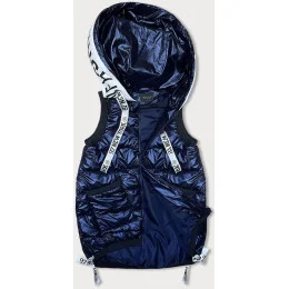 Dámska tmavomodrá rebrovaná bunda bez rukávov (16M9115-215)
