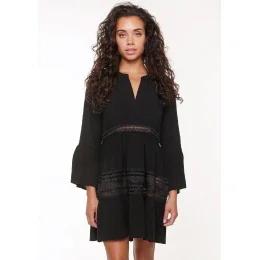 Dámska tunika obľúbenej značky LingaDore. Tunika je veľmi príjemná na nosenie, hodí sa na plavky, pokiaľ idete na pláž alebo k bazénu. Môžete ju nosiť aj ako letné šaty. Tunika je voľného strihu, rukávy sú voľné, majú 3/4 dĺžku a sú ukončené veľkým volánom. Tunika má voľný výstrih do písmena "V". V tunike sú všité krajkové pásy, ktoré ju robia zaujímavou a nevšednou.