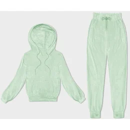 Dámska velúrová súprava v pistáciovej farbe s kapucňou (8C1175-39)