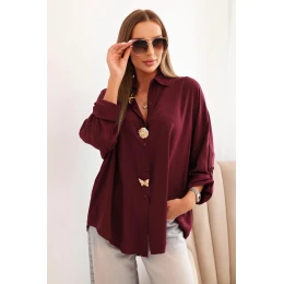 Dámska viskózna košeľa s ozdobnými gombíkmi a golierom bordová