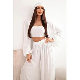 Dámska viskózna štvordielna súprava v boho štýle v bielej farbe