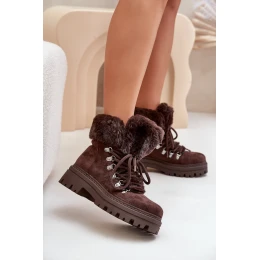 Dámska zateplená členková obuv s kožušinou 9685 Tmavohnedá MARQUIIZ