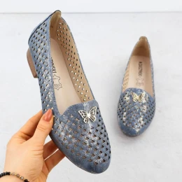 Dámske ažurové topánky na nízkom podpätku modré M.Daszynski SA222-3