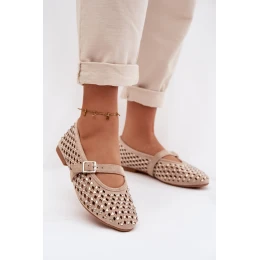 Dámské baleríny s krajkovým vzorem s kamínky a s páskem Bežowe Wilvessa