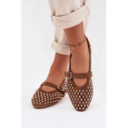 Dámské baleríny s otevřeným vzorem s kamínky a páskem Hnědé Wilvessa