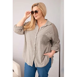 Štýlová dámska košeľa Plus Size je dokonalou kombináciou pohodlia, ženského štýlu a módnych detailov. Model je vyrobený z prírodnej bavlny, vďaka čomu je materiál ľahký, priedušný a veľmi príjemný na nosenie. Vďaka voľnejšiemu strihu sa košeľa dokonale prispôsobí postave a zabezpečí voľnosť pohybu počas celého dňa.