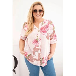 Dámske bavlnené Plus veľkosť blúzka s V-výstrihom a kvetinovým vzorom Powder Pink
