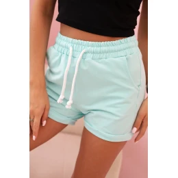 Dámske bavlnené šortky s elastickým pásom mentolové