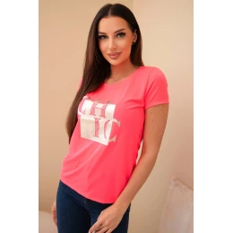 Dámske bavlnené tričko s potlačou CHIC pink neon