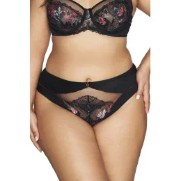 Dámske brazilky 2122 Intense AVA - čierne - vyrobené z hladkého elastického materiálu - kombinácia priehľadného tylu s farebnou výšivkou - vpredu zdobené jemným šperkom - na bokoch ozdobné červené švy - na chrbte ozdobná aplikácia v tvare trojuholníka