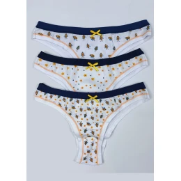 Dámske bavlnené brazilky od značky Lovelygirl. Brazilky sú jemné na dotyk, hladké, na prednej strane s potlačou. Po obvode je pohodlný širší elastický pás a vo vnútornej časti je všitý bavlnený klin pre pohodlné nosenie. Farba nohavičiek bude vybraná náhodne alebo môžete napísať farbu do poznámky. Cena je za jeden kus. Sú balené v krabičke. Materiálové zloženie: 90% bavlna, 10% elastan.