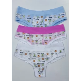 Dámske bavlnené brazilky od značky Lovelygirl. Brazilky sú jemné na dotyk, hladké, na prednej strane s potlačou. Po obvode je pohodlný širší elastický pás a vo vnútornej časti je všitý bavlnený klin pre pohodlné nosenie. Farba nohavičiek bude vybraná náhodne alebo môžete napísať farbu do poznámky. Cena je za jeden kus. Sú balené v krabičke. Materiálové zloženie: 90% bavlna, 10% elastan.