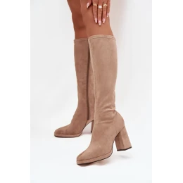 Dámske čižmy na podpätku NN634 Beige - GIVANA