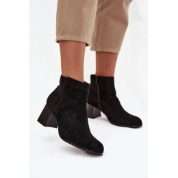 Tieto dámske čižmy vyrobené z ekologického semišu sú elegantnou a univerzálnou voľbou na chladnejšie dni. Model klasického strihu je osadený na stabilnom stĺpikovom podpätku, ktorý zaručuje pohodlie a istý krok. Čižmy sa zapínajú na zips, vďaka čomu sa ľahko obúvajú aj vyzúvajú. Sú to nadčasové čižmy, ktoré sú skvelým doplnkom k ležérnym aj spoločenským štýlom. Pri výbere veľkosti sa riaďte tabuľkou veľkostí. Pri výbere veľkosti sa riaďte tabuľkou veľkostí.