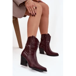 Dámske členkové topánky na podpätku D8271 Burgundy - Sweet Shoes
