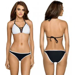 Dámske dvojdielne plavky L1043 / 8 Lorin s trojúholníčkovým strihom podprsenky! príjemný plavkový materiál, ktorý rýchlo schne biela podprsenka s čiernym lemovaním trojuholníčkové košíčky (bez kostíc) majú vyberateľné vypchávky ramienka a obvod sa zaväzujú na tenké šnúrky klasické čierne nohavičky s bielym lemovaním pas a nohavičky sú elastické kolekcie 2018
